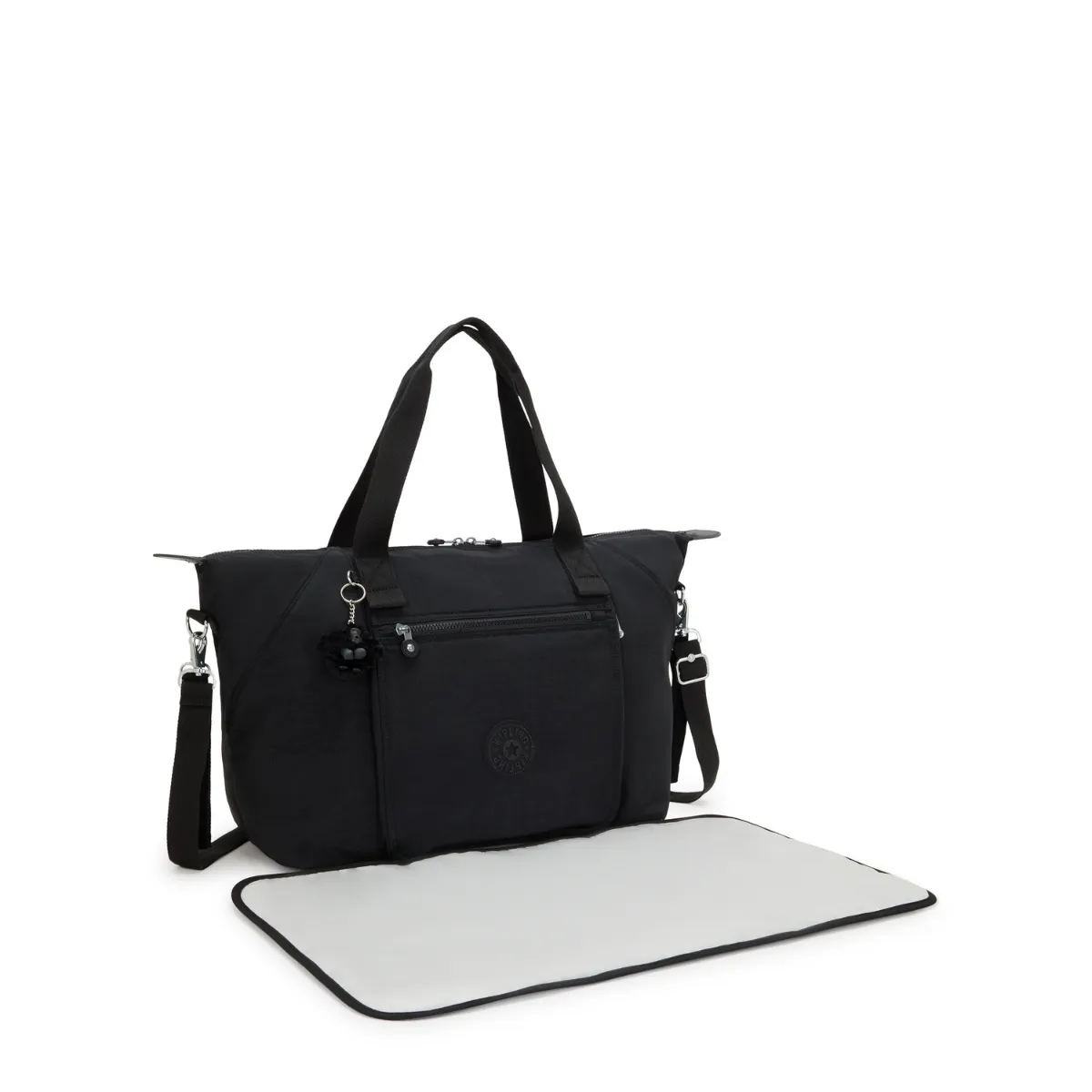 The Art M Baby Bag is a large and well-organised baby bag from Kipling equipped with a changing mat and separate holders for a bottle and pacifier. Zipped main compartment changing mat included in front zipper compartment.